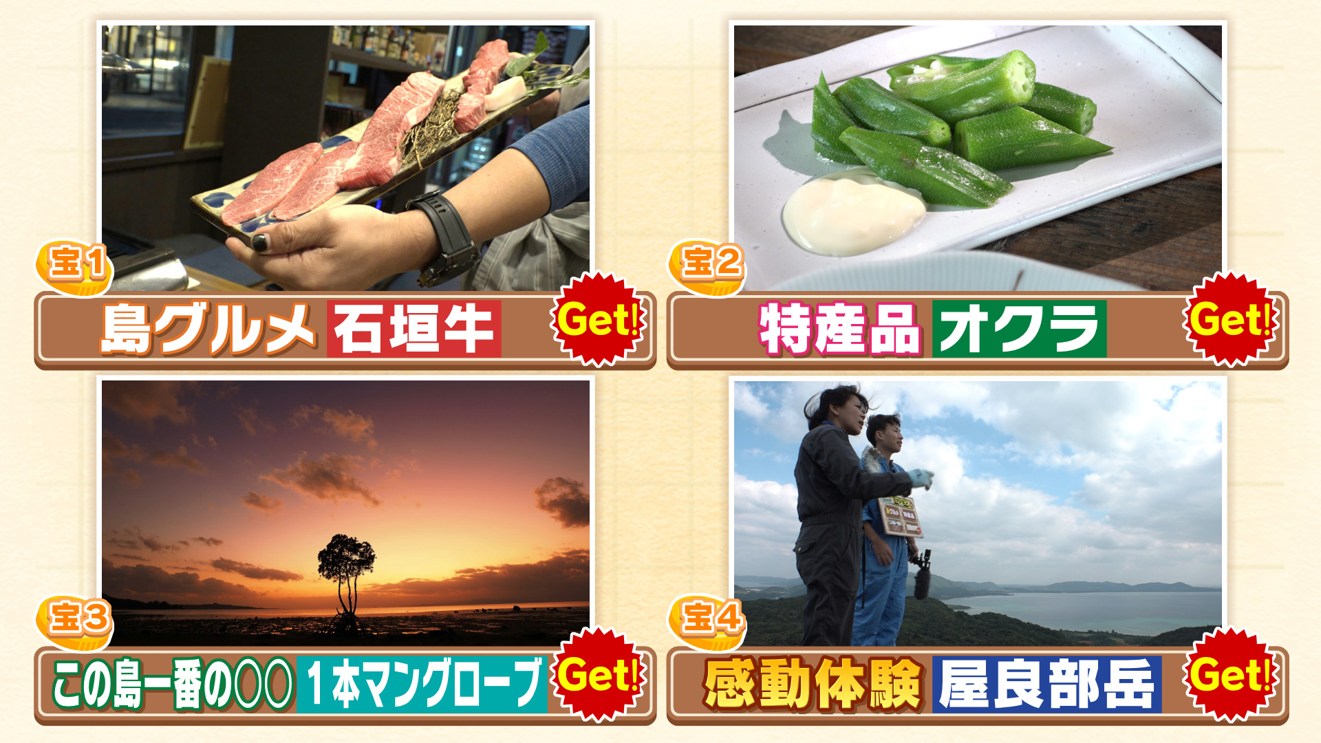2025年1月23日放送 30離島再発見!! トレジャーアイランド 石垣島 石垣島で話題のスポット「1本マングローブ」へ向かうも、まさかの展開!? 3島目!本島からおよそ400キロ離れている石垣島です。 ゆいまーる牧場 屋良部岳 星野共同売店 一本マングローブ 石垣牛専門店 焼肉金城 サタケ八重山ヤシ記念館