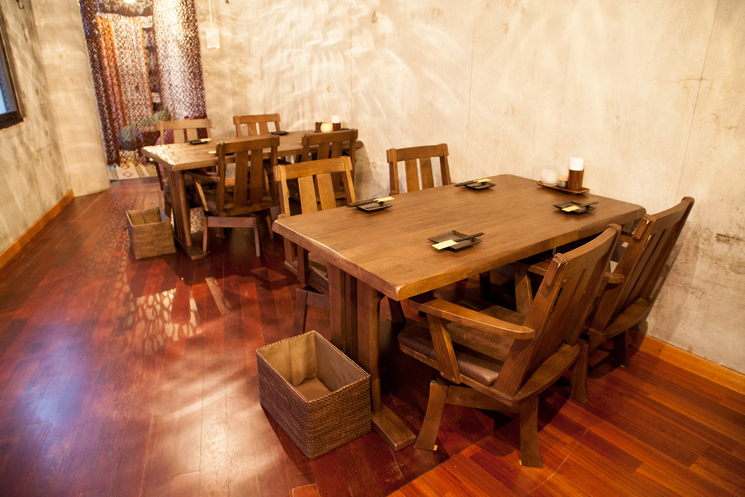 県産品のお肉を使った炭火炙りを中心に、いろいろな創作料理をご用意しました。ゆったり・ゆっくりくつろげるお店をめざしています。ぜひ一度ご来店ください。! トマトの揚げ出し ¥580(税込) 岩のりワサビチャーハン ¥670(税込) トマトとフーチバーのオムレツ ¥680(税込) 県産豚のコメカミ炙り ¥550(税込) 桜エビとコーンのかき揚 ¥600(税込) 入店から2時間アサヒスーパードライ¥190 女性グループ限定 入店から2時間ドリンク全品半額 営業時間 17:30〜25:00 定休日 日曜日・第一月曜日 住 所 那覇市牧志3-15-51 嘉数リースビル201 TEL 098-869-3504