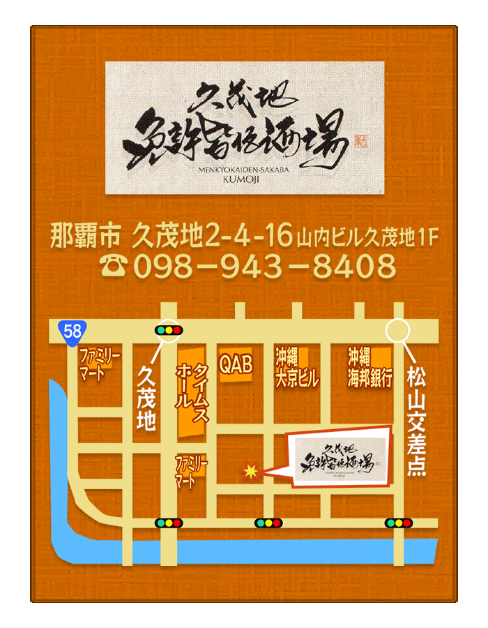 全国各地の有名店の看板メニューが勢ぞろい!実際に全国のB級グルメ店で研修し屋号をそのまま使える「お墨付き」を各店よりいただいています。有名店の絶品メニューをぜひご賞味あれ! 中津からあげ もも肉 ¥580(税抜) 宇都宮餃子 焼餃子 ¥380(税抜) たこやきネギぶっかけポン酢 ¥380(税抜) 熊本馬刺し4種盛り ¥1480(税抜) 島豚南蛮つけせいろそば ¥850(税抜) 毎日17時~19時は餃子、スープ餃子、アサヒスーパードライ中ジョッキが半額! 営業時間 ランチ(金~土)11:30~14:00 ディナー17:00~翌5:00 定休日 日曜日(月曜日が祝日の場合日曜営業 月曜休日になります) 住 所 那覇市久茂地2-4-16 山内ビル1F TEL 098-943-8408