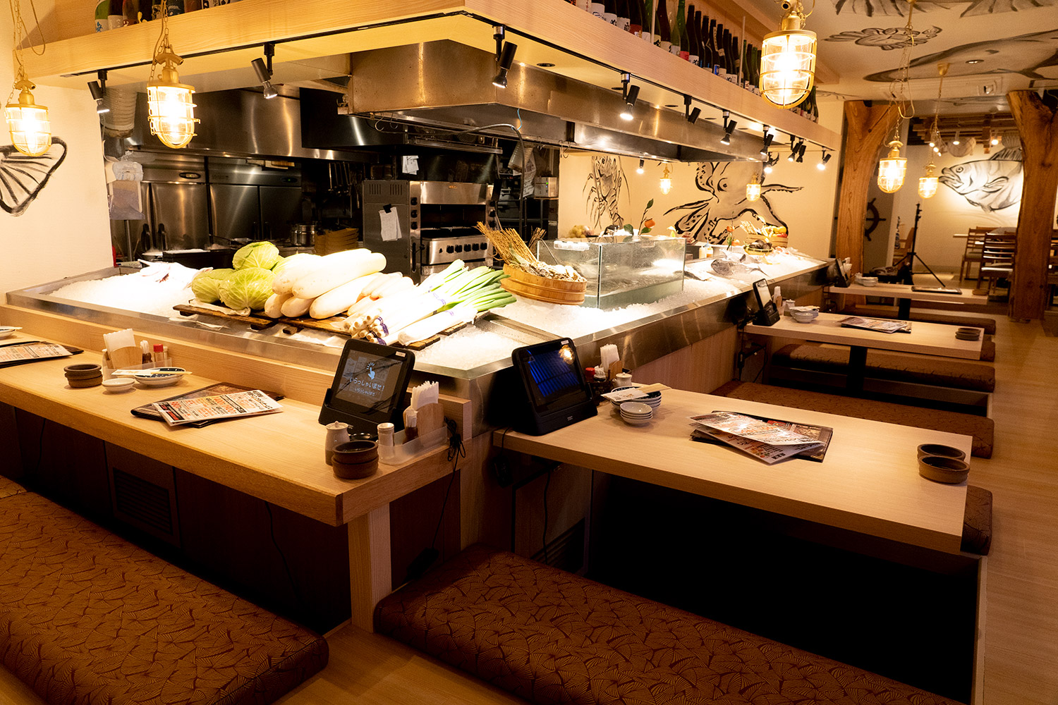 人数に合わせた大小個室、最大40名様までご利用できるお席、35台収容の駐車場なども完備!水槽で泳ぐ活魚や実際に調理している様子をご覧いただける炉端もあり旬の食材やお酒も楽しめます。さらに11月にリニューアル!新しくなったぴかり魚にぜひお越しください!