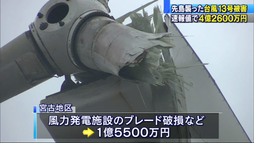 台風13号による農林水産被害、速報で4億円あまり