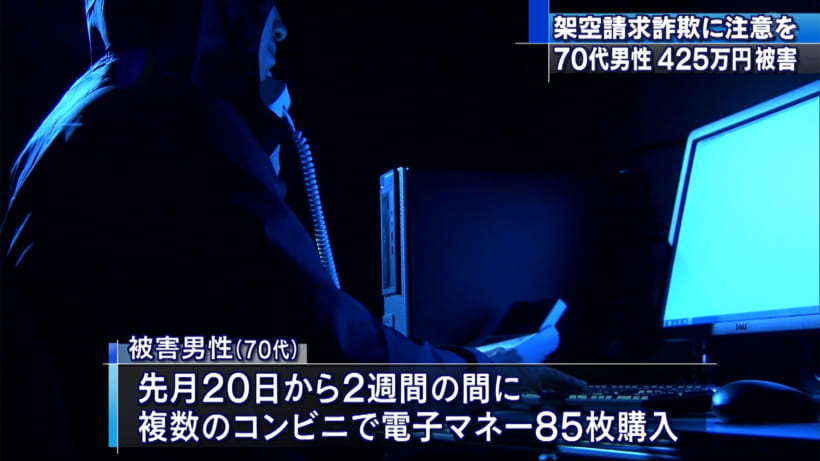 架空請求詐欺発生 総額425万円支払う