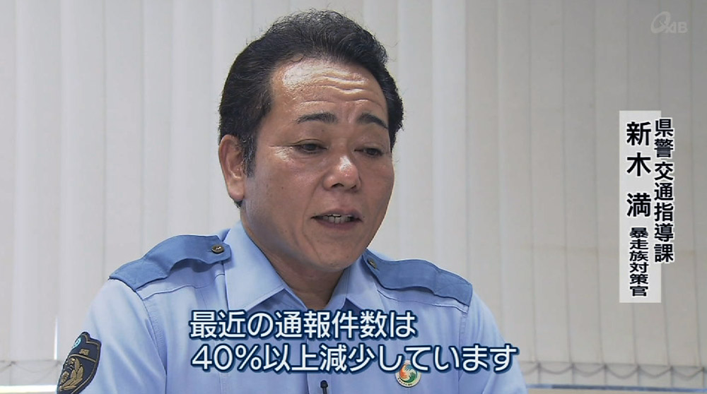 県警交通指導課・新木満「最近では、暴走行為をしている期待族が「ツイッター」とか「LINE」などを使って、白バイの取り締まり状況を連絡しあってですね、取締の目を縫って、迷惑行為をしているという状況であります。」
