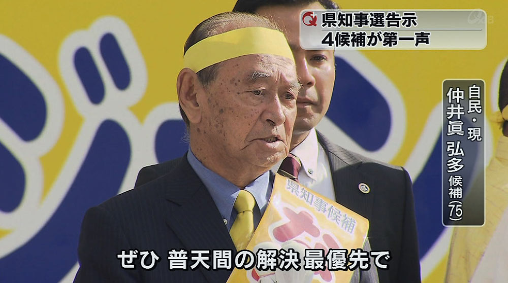 仲井眞弘多候補「是非普天間の解決。最優先で。何とか今度ですね、私にもう一回仕事をさせてください」