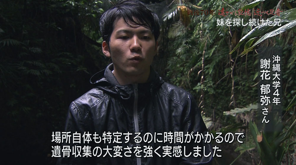 沖大生4年謝花郁弥さん(21)「本当にビックリしましたね。場所自体も特定するのに時間がかかるので、遺骨収集の大変さを強く実感しました」