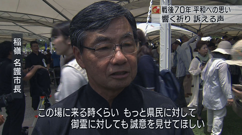 稲嶺名護市長「誠意というか、実感が伝わらないですよね。この場に来るときくらい、もっと県民に対して、御霊に対しても誠意を見せてほしいです。」