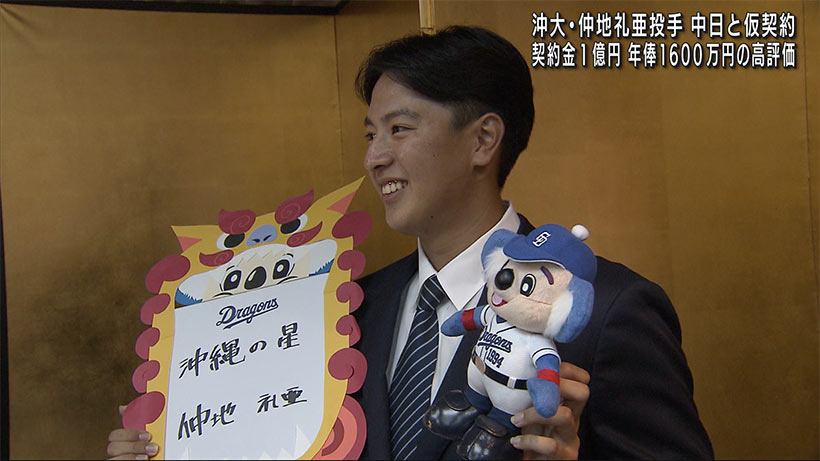10月のプロ野球ドラフト会議で中日ドラゴンズから1位指名を受けた沖縄大学の仲地礼亜投手が7日、球団と仮契約を結びました。 10月に行われたプロ野球のドラフト会議で中日ドラゴンズから1位指名を受けた仲地…