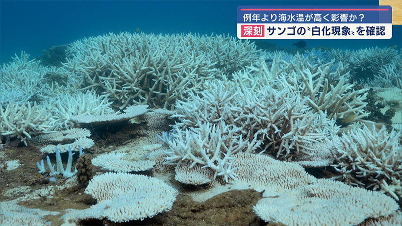 ここからはサンゴの話題、深刻な状況です。沖縄本島北部の本部町で 浅瀬に広がるほとんどのサンゴが白くなり死滅するおそれが高くなる白化現象が起きていることが分かりました。 これは水中カメラマンの長田勇さん…