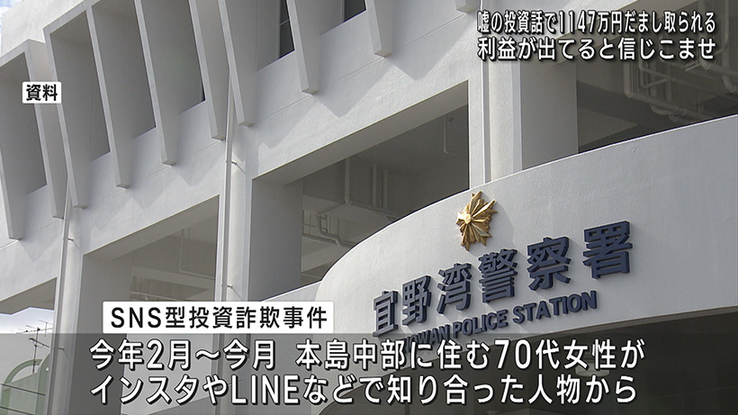 本島中部に住む70代の女性が、SNSで知り合った人物による嘘の投資話で現金1147万円をだまし取られるSNS型投資詐欺事件が発生しました。 警察によりますと2025年2月から4月にかけて、本島中部に住…