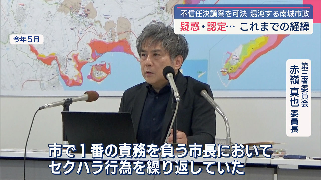 一方、市が設置した第三者委員会はことし5月、古謝市長のセクハラ行為があったと認定し市長の辞職を提言。市長は一部の行為を認めたものの、辞職はしませんでした。