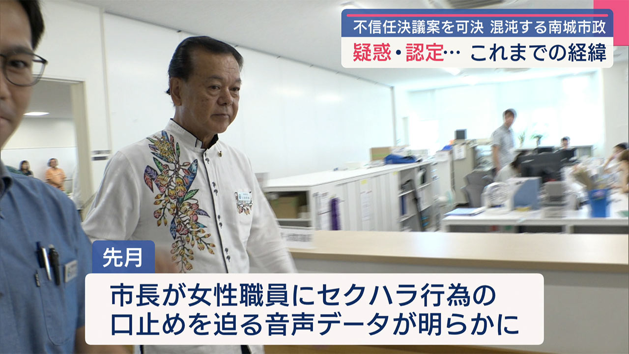市長のセクハラ疑惑を発端に一連の混乱が続くなか、市民からは戸惑いや対応への不満などの声が出ています。9月26日、南城市議会が古謝景春市長に対する不信任決議案を可決したことを受け、市長は10月6日に、不信任への対応を文書で議会に通知するとしています。