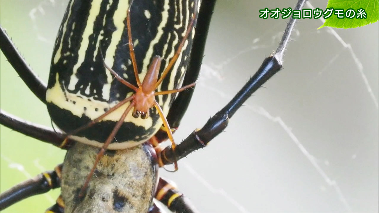湊 和雄さん「さらに、雌の吐き出す糸には種類があります。縦糸には粘着性がありません。クモが移動するときの足場です。横糸は強い粘着性があります。獲物を絡めるためです。本能と言ってしまえば、それまでですが、誰に教わるでもなく、よくこのような細かい作業をこなせますね」