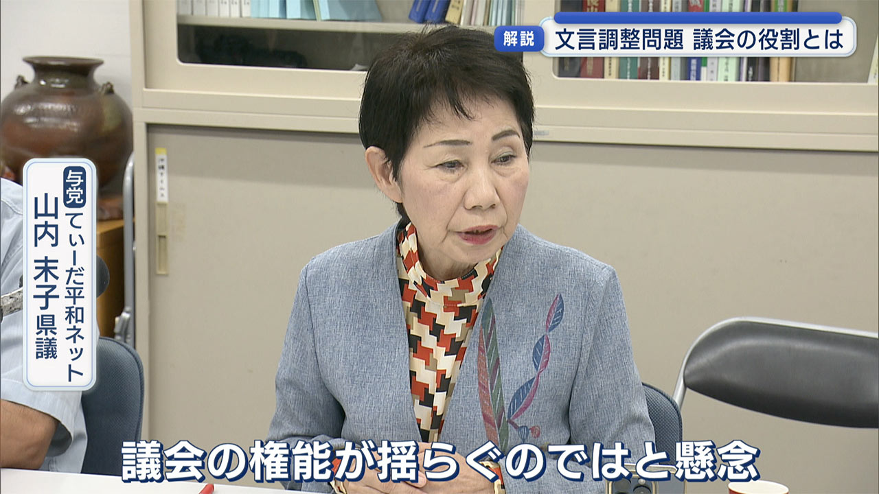 与党 てぃーだ平和ネット・山内末子県議「県民に寄り添った意見書を策定しようというさなかでの、こういう事態について、議会の権能が揺らいでいくのではと懸念がある」