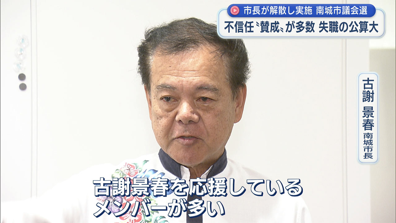 2025年11月9日に投開票が行われた南城市の市議会選挙で、古謝市長の不信任に賛成を表明している候補が18人当選。市長が失職する公算が大きくなりました。