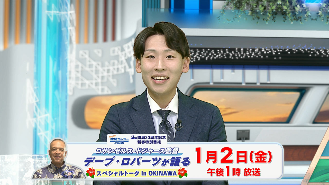 早速ですが、1月2日(金)午後1時から那覇市出身 メジャーリーグ・ロサンゼルスドジャースデーブ・ロバーツ監督の新春特別番組を放送します。QAB単独インタビュー、ここでしか聞けない沖縄トーク満載の1時間です。どうぞお楽しみに!