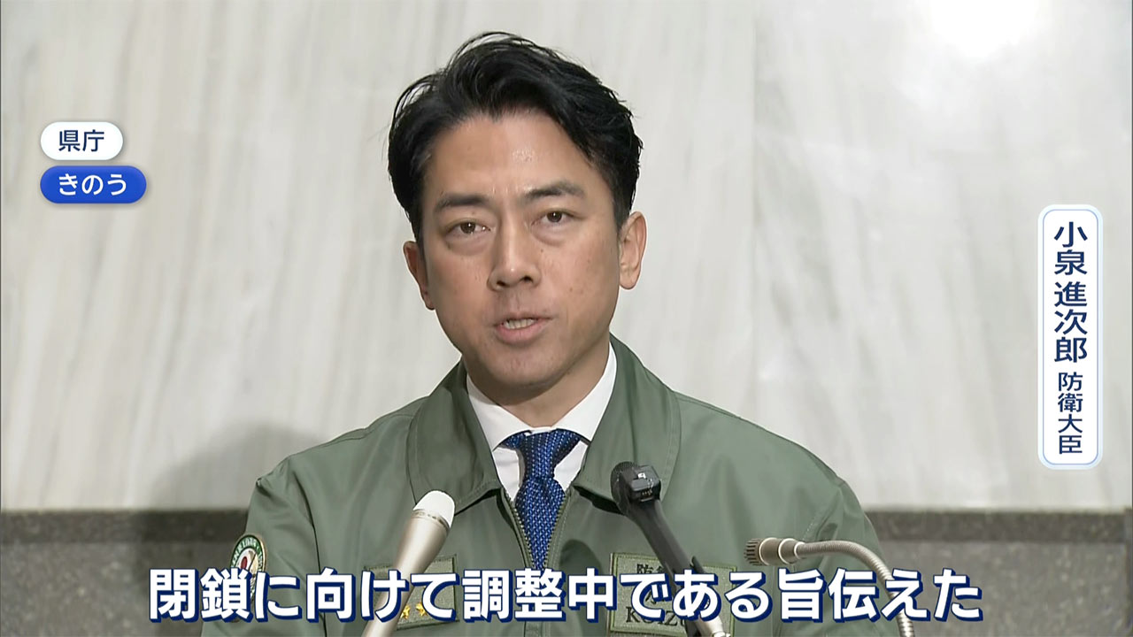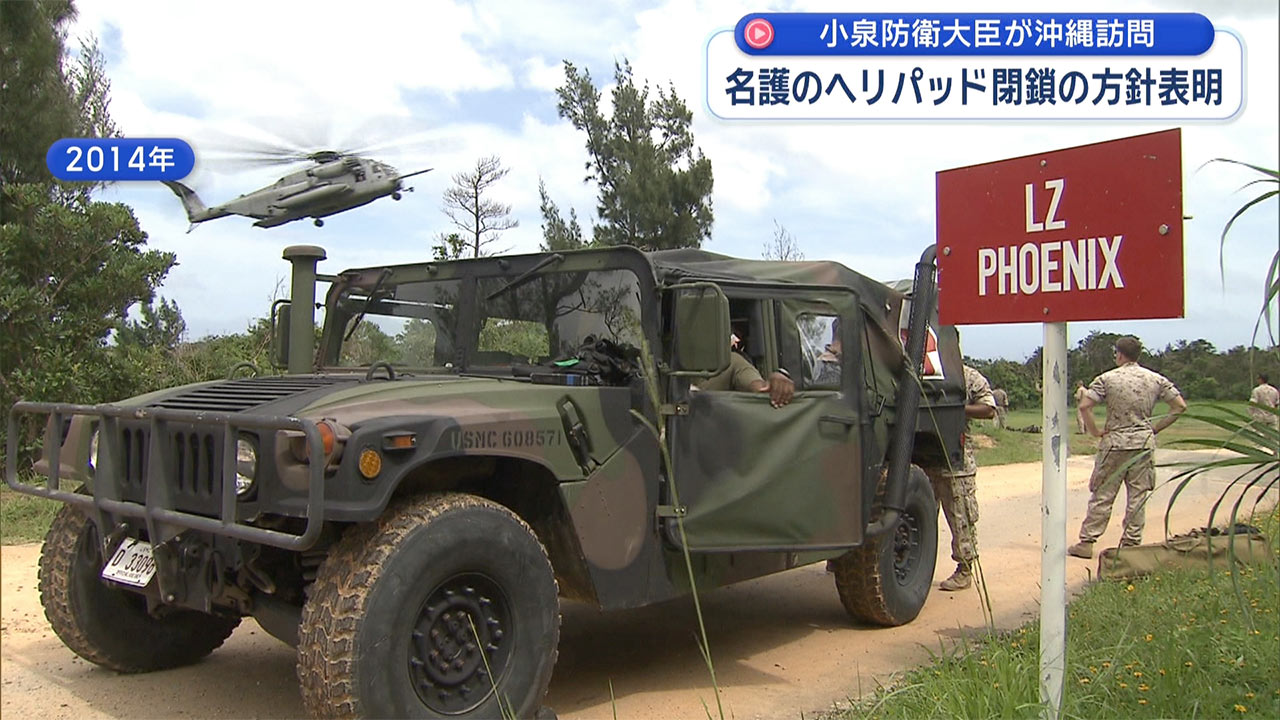 視察を終えて沖縄を去る直前のきのうの夕方、一つの成果をこう述べた、小泉防衛大臣。視察初日のおととい、名護市の渡具知市長らとの面談の中で、市などが撤去を要請していたキャンプ・シュワブ内のヘリパッドを閉鎖をアメリカ側と調整していると表明したのです。