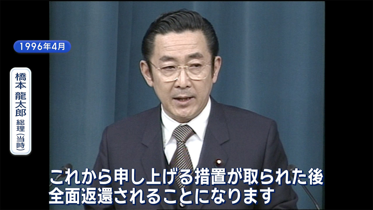 橋本総理(1996年)「この決断は、沖縄県及び沖縄の方々の強い要望を背景としてなされたものであります」