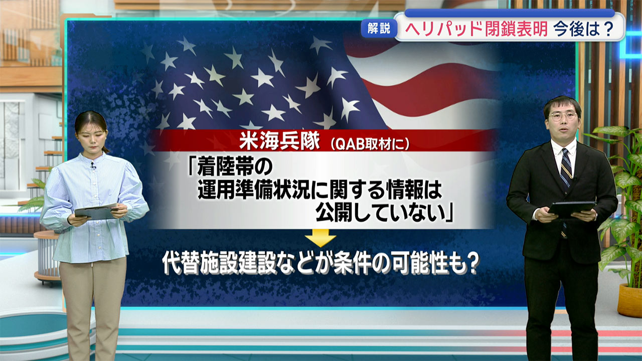 塚崎記者「閉鎖時期やアメリカ軍との調整状況は不明なままです。アメリカ海兵隊にも閉鎖時期についてQABが質問したのですが『着陸帯の運用準備状況に関する情報は公開していない』と回答はありませんでした」