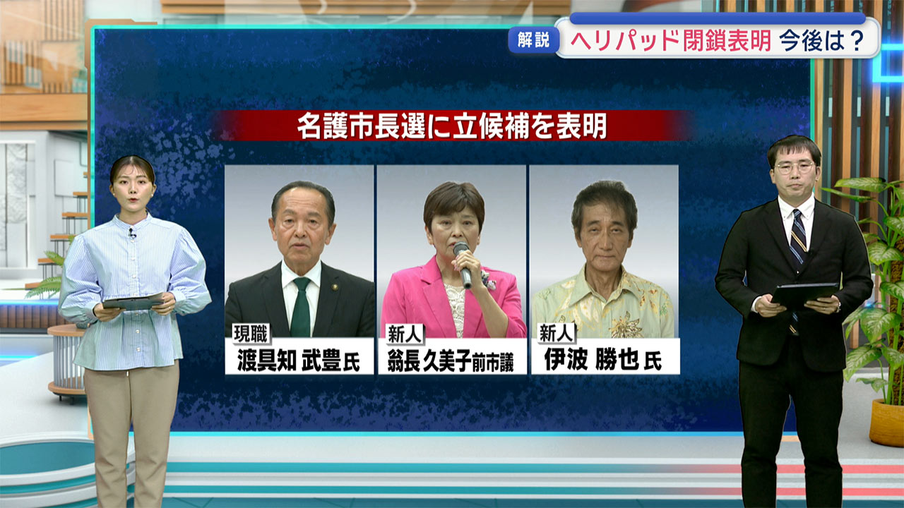 一方で、今回のヘリパッド閉鎖方針の表明は、渡具知市長が3選目を目指して出馬を表明する市長選挙告示を今月18日に控えたタイミング。市政野党からは、懐疑的な見方も出ます。