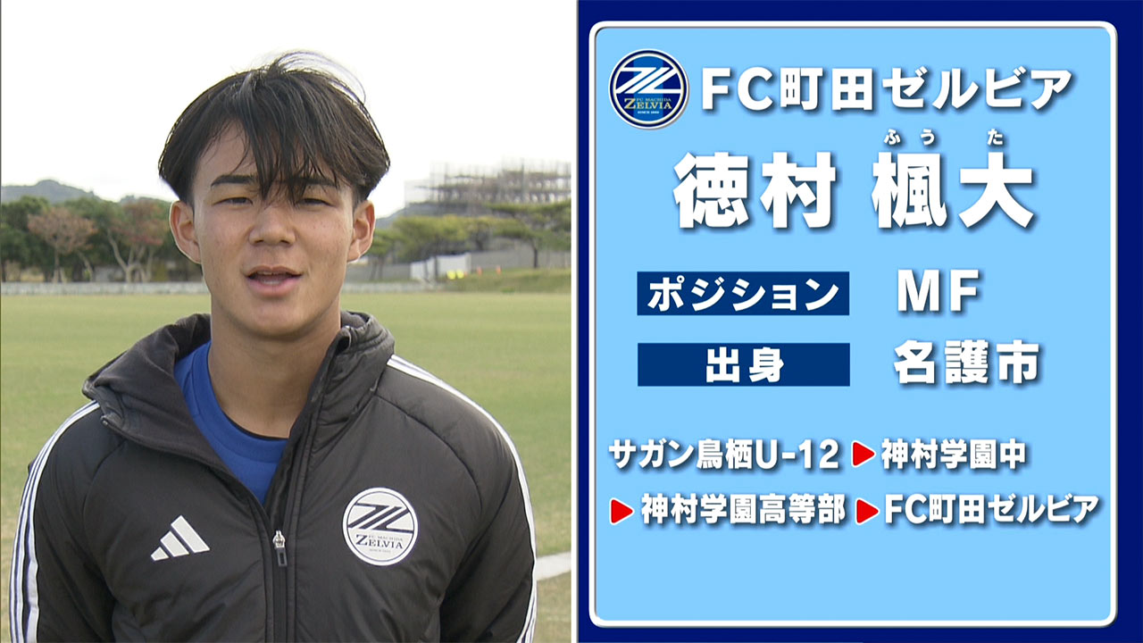 名護市出身で中学から鹿児島県の神村学園に進学した徳村選手、今年の全国高校サッカー選手権ではエースストライカーとして初優勝に貢献。そして去年11月、プロの夢を叶え町田への入団を決めました。