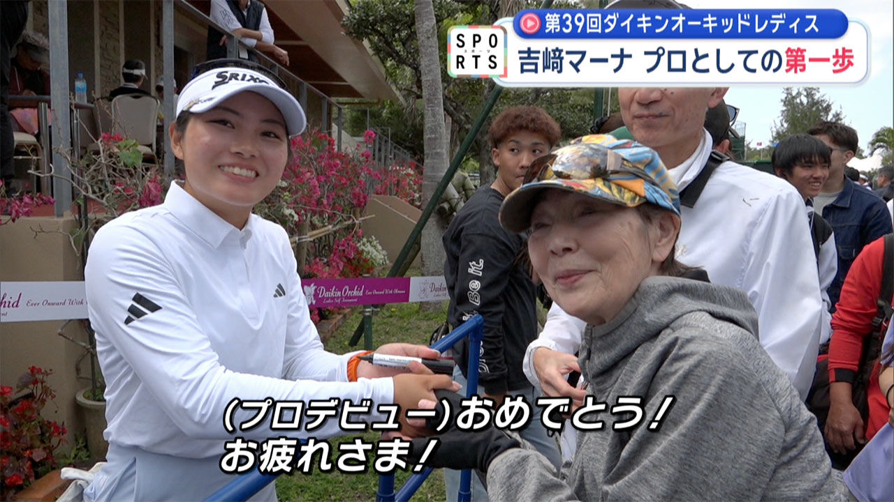 去年プロテストに合格し、今大会がプロデビュー戦となった「吉﨑マーナ」初日は県勢トップの17位と好スタートを切りアマチュア時代を含め3年連続で決勝ラウンドへ。会場には彼女を幼い頃から見守ってきた人がいました。