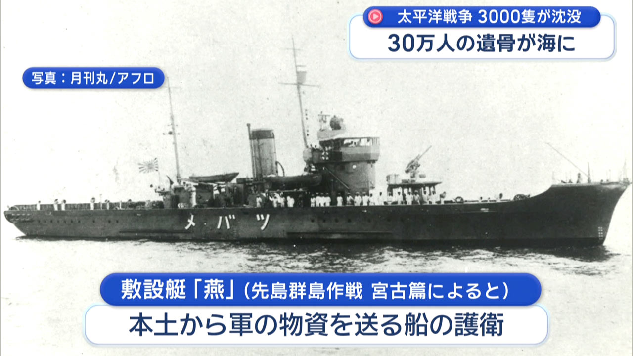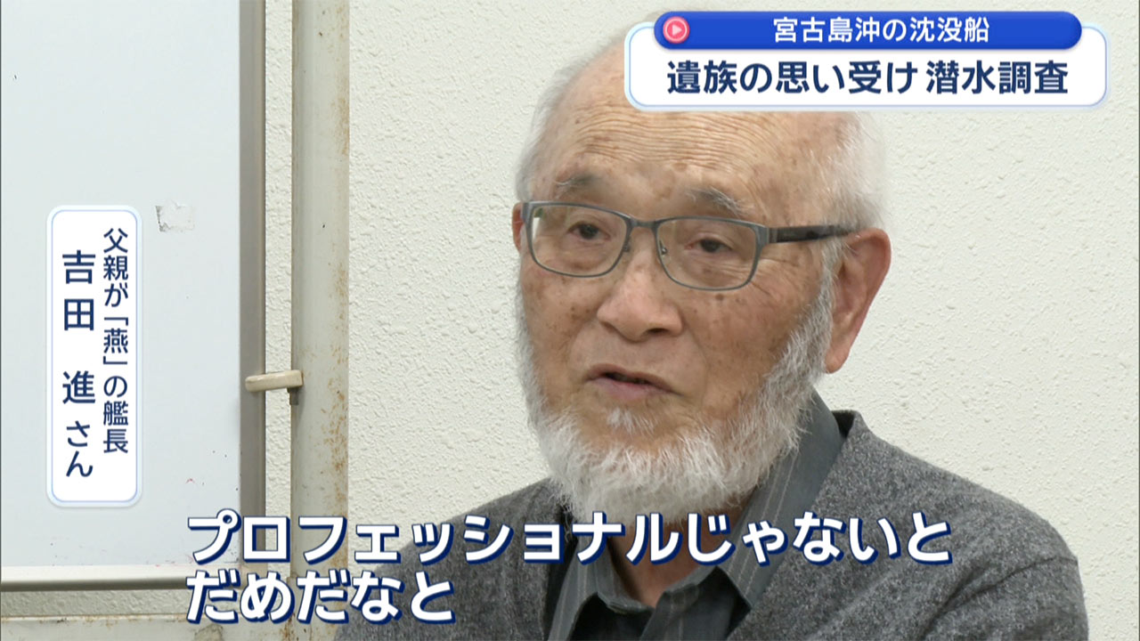 太平洋戦争当時に、宮古島の沖合で旧日本海軍の船が沈没しました。80年以上が経つなか、艦長だった父親の遺骨を探したいという遺族の思いを受けてダイバーの男性が調査に乗り出しました。