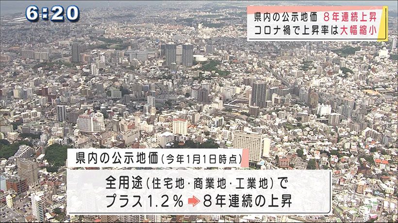 沖縄県の地価調査の結果がまとまり、全国でもトップクラスの伸び率を記録したことがわかりました。 県のまとめた地価調査結果によりますと、県内の住宅地で最も価格が高かったのは那覇市天久2丁目で、2016年よ…
