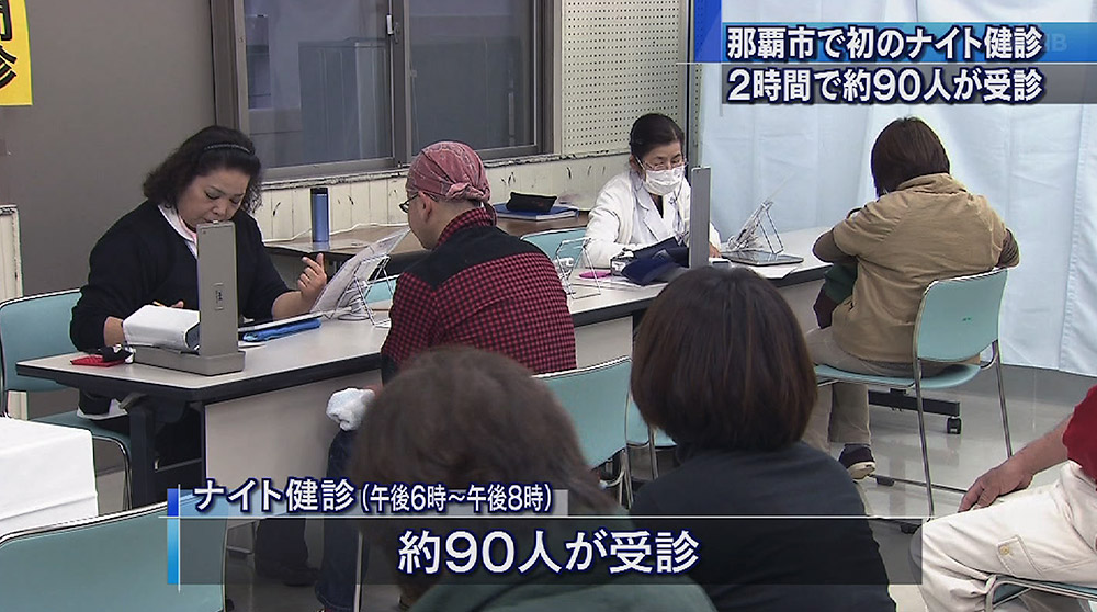 昼間、仕事や育児に追われている人たちにも特定健診を受けてもらおうと、那覇市で26日にナイト健診が行われました。 ナイト健診は那覇市では初めて実施されました。今回は一夜限りということで、午後6時から8時…
