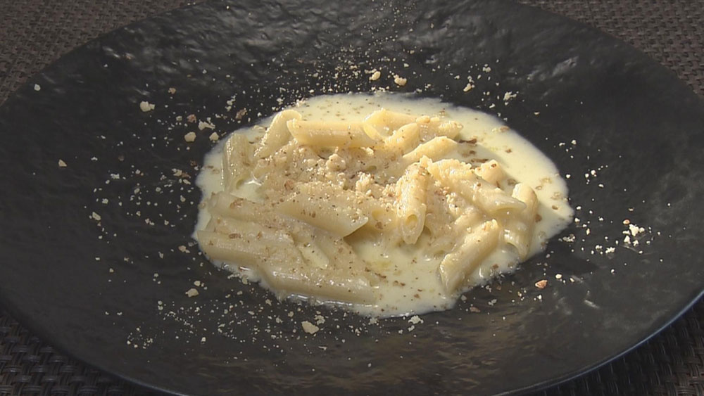 5)皿に盛り付けて、最後に粉チーズ、砕いたクルミ、ブラックペッパーを振りかければ完成♪