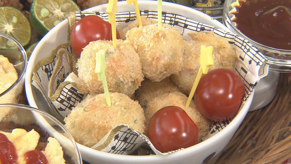 3)1に2を加えて全体を混ぜ合わせて、パセリ、塩こしょうを加え、一口大に丸める。
