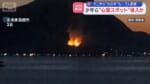 室内で早く乾かそうとストーブの上につるされた洗濯物。タオルがストーブに接触し、その後、激しい炎が上がります。