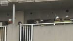 男はこの8分ほど前に、黒い上下の服装で建設会社の従業員に何かを伝えて戻っていました。