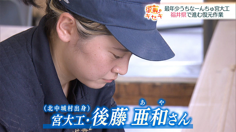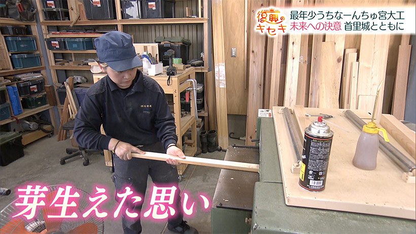首里城復興の歩みを伝える『復興のキセキ』です。来年の秋に完成を予定している正殿の復元には、技術を後世につなごうと多くの若手職人が携わっています。今回はそのひとり、最年少のうちなーんちゅ宮大工に迫ります。