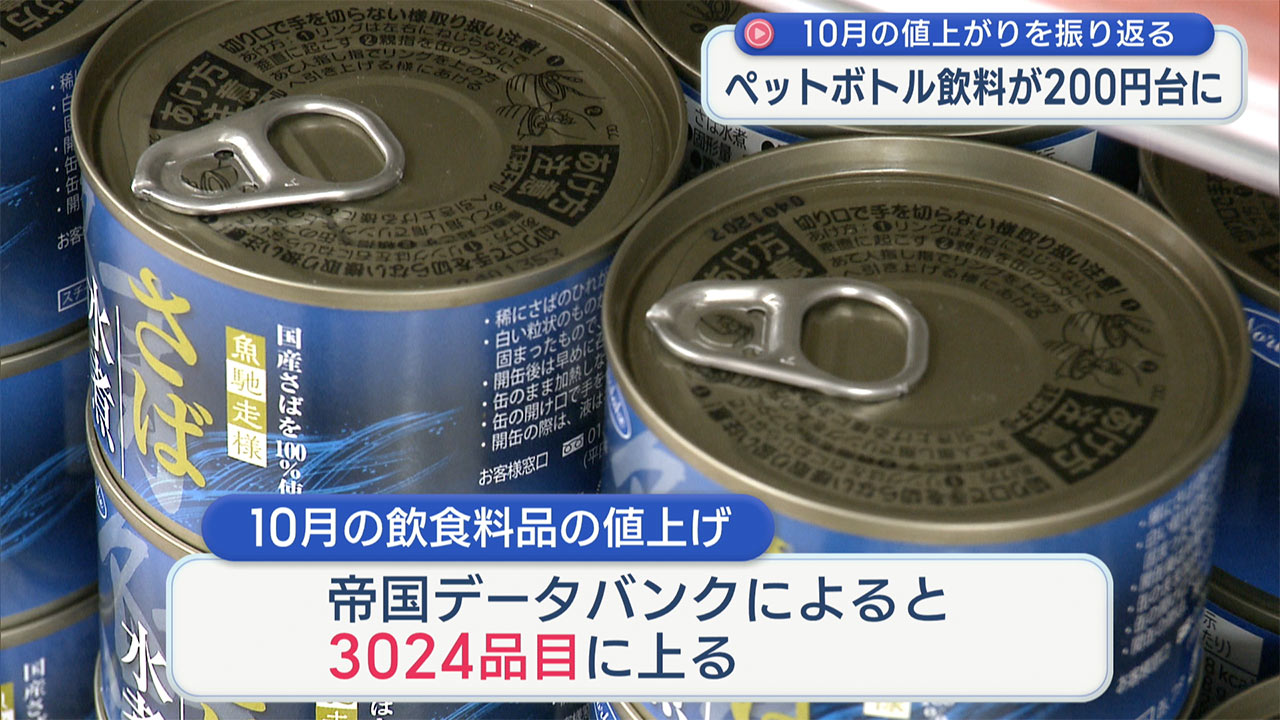 帝国データバンクによりますと10月の飲食料品の値上げはあわせて3024品目に上っています。3000品目を越えたのは今年4月以来で「半年ぶりの値上げラッシュ」となったのです。