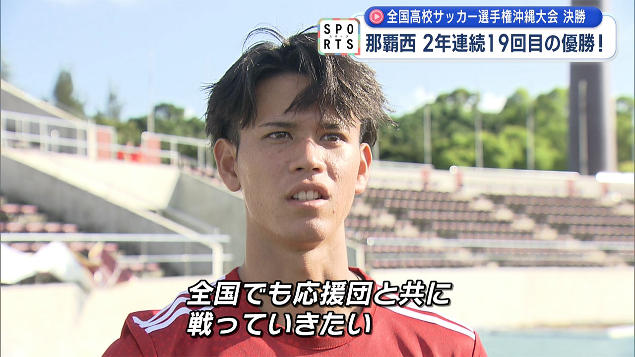 那覇西10具志堅 洸(ぐしけん こう) 主将「リーグ戦で全て逆転して勝ったという自信が」「延長後半や同点ゴールに繋がった」「試合に出れない人の思いも」「責任もって戦わないといけない」「応援団も一緒に戦っての那覇西」「全国でも応援団と共に戦っていきたい」