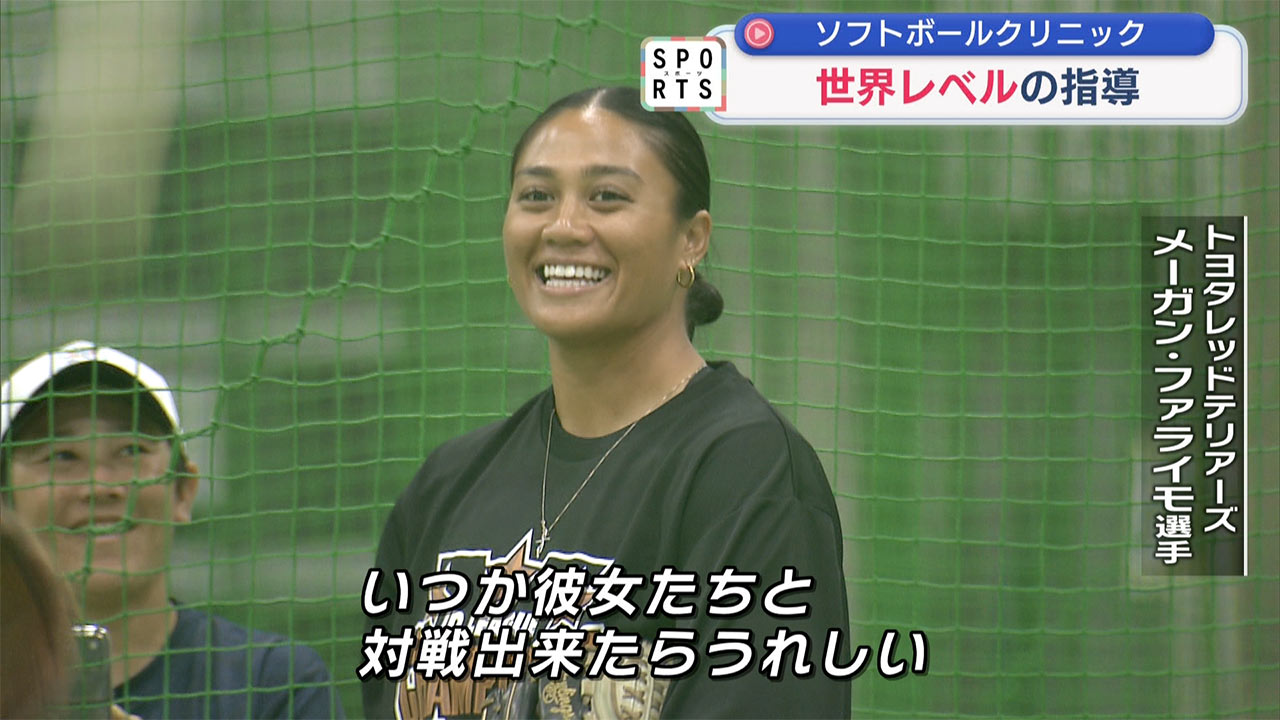 次はソフトボールです。世界大会でも活躍してきた現役の選手がクリニックを開催。県内の選手たちが世界レベルのプレーに触れました。