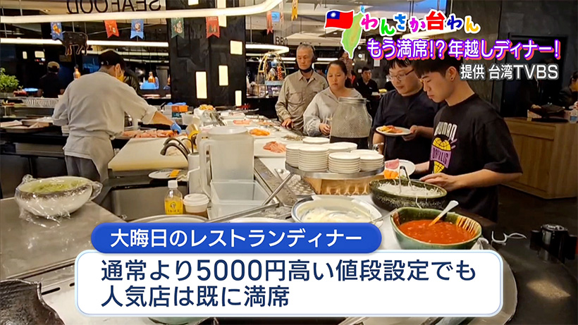 デパートにできた長蛇の列!レストランでの年越しディナーを予約しに来た人々です。今年は、普段より短い時間で通常価格から、およそ5000円上乗せした値段設定ですが、人気レストランは既に軒並み満席となっています。