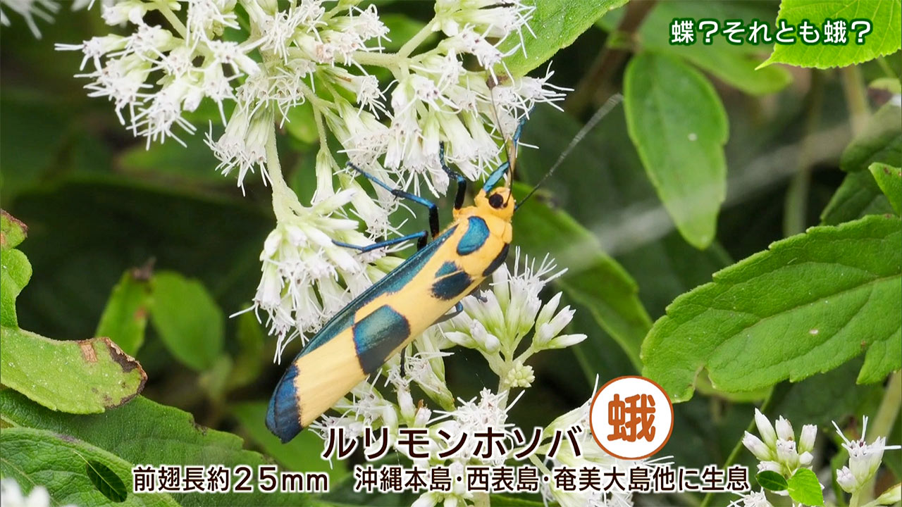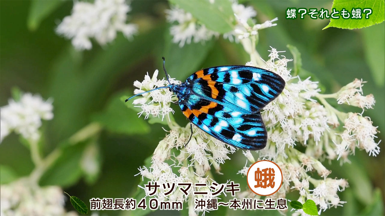 湊 和雄さん「蝶と蛾の違い、分かりますか?鮮やかなのが蝶、地味なのが蛾。昼間活動するのが蝶、夜活動するのが蛾。とまるときに翅を閉じているのが蝶、開いているのが蛾」「など、いくつかの識別ポイントが挙げられますが、何れも例外が存在します。映像で実際の例を見てみましょう」