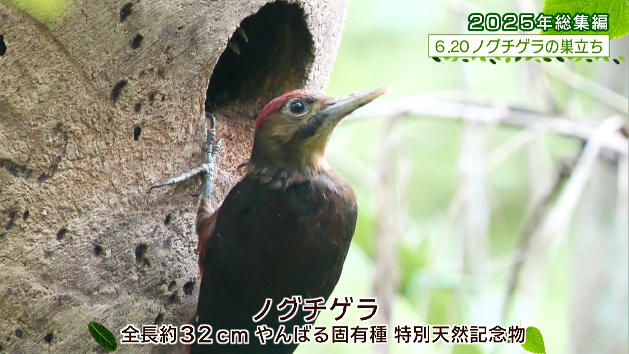 湊 和雄さん「先ず6月20日放送の「ノグチゲラの巣立ち」からです。ノグチゲラの子育てシーンの撮影は2018年以来、巣立ちの瞬間はハイビジョン時代になってからは初めてではないでしょうか。何しろ、500羽程しかいない(公称値なし)、最大で3羽しか巣立たないノグチゲラの40日間程の子育て期間でほんの一瞬の出来事ですから。今回は2羽の雛が巣立ちましたが、どちらも何とか撮影できました」