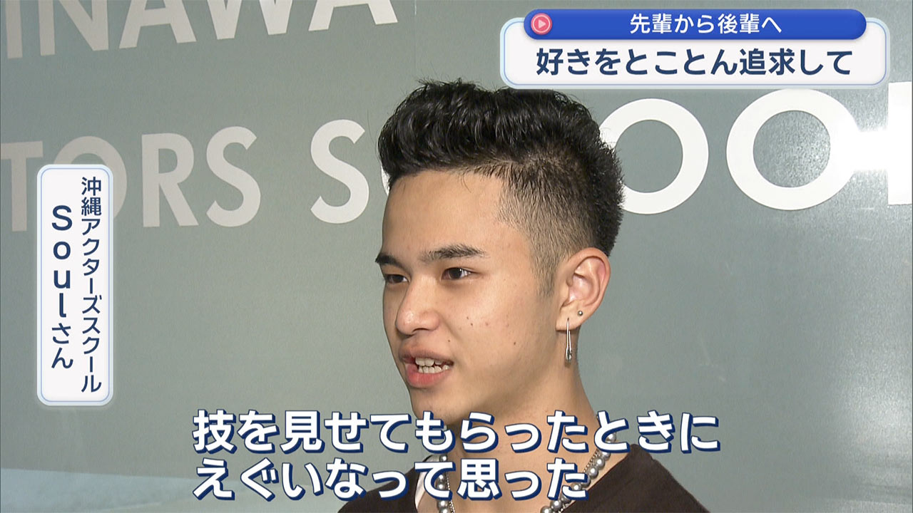 沖縄アクターズスクールSoulさん「技を見せてもらったときに、えぐいなって思いました、尊敬です」「演技とかもやっているので、そのなかでアクションとかもチャレンジしていきたいので、ブレイキンのけりの技とかもアクションとかで使いたいなと、きょうはけりなどを習っていました」