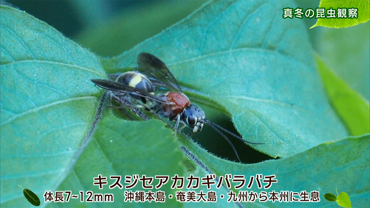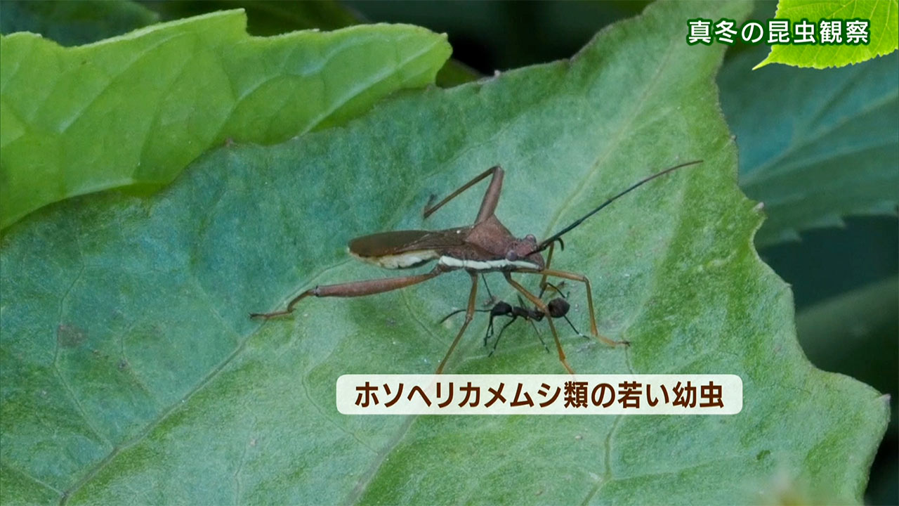 湊 和雄さん「暑い日もあれば、今日のように冷え込む日もあります。昆虫は夏を中心に暑い時期を好む生き物の印象が強いですが、真冬でも多くの昆虫が活動しています。例年ならば、マダラチョウの仲間が冬の主役なのですが、今冬はとても少ない状況です。それ以外のグループに目を向けてみました」