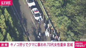 「クマに襲われた」キノコ狩りで入山の4人グループから通報 70代女性重体 宮城