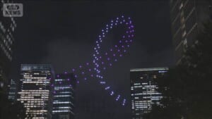 「乳がんのない世界へ」ドローンで夜空をピンクに 小池都知事が点灯式に出席