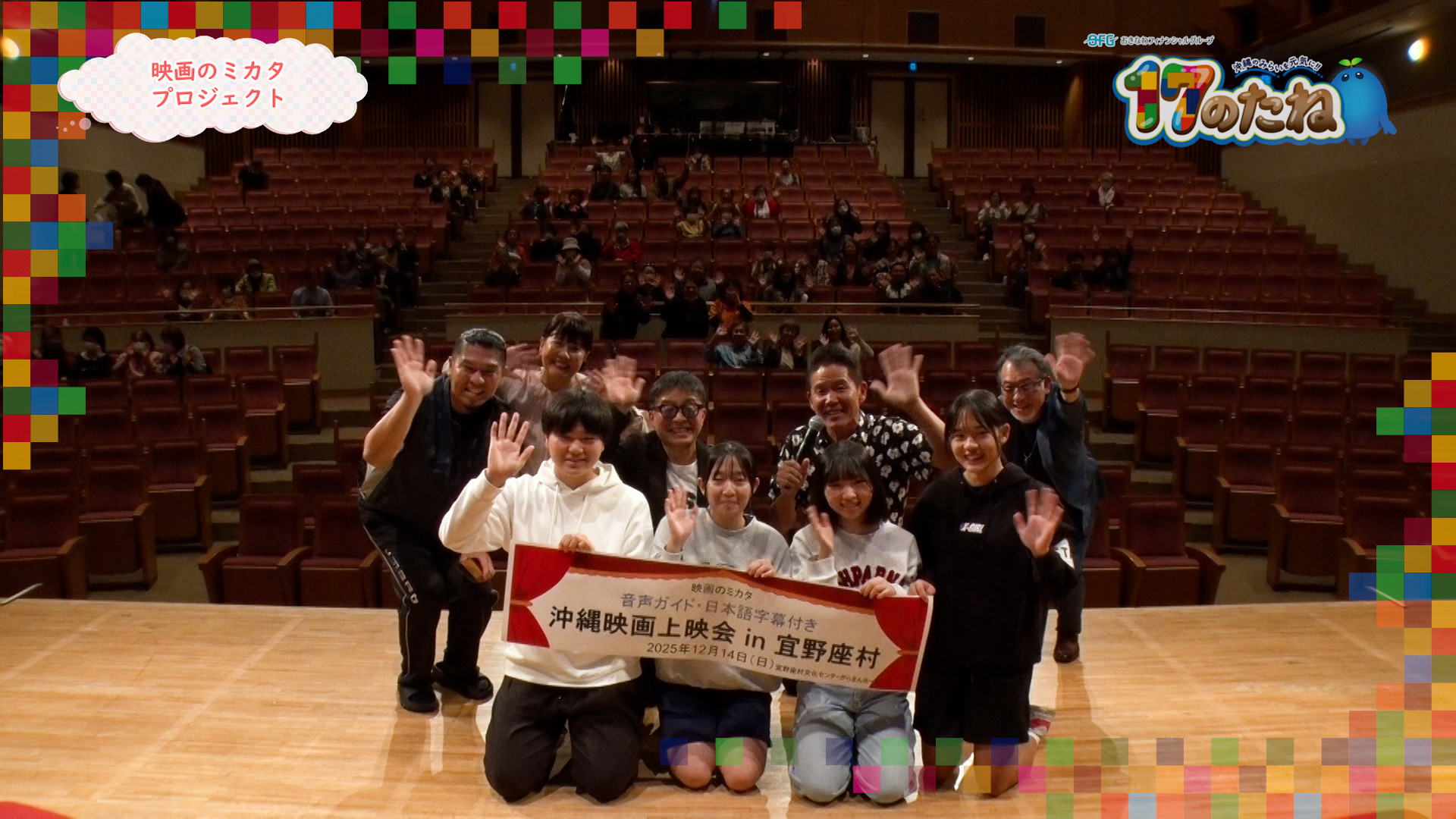 映画のミカタプロジェクトでは沖縄の映画に音声ガイドや日本語字幕を付けて、耳が不自由な方や目が不自由な方でも同じタイミングで楽しめるような映画作りをしています。